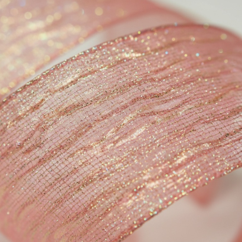 Organza-Band rosa mit Multicolor-Effekt und drahtverstärkten Kanten, ideal zum Formen und um Ihren Projekten eine elegante, lebendige Note zu verleihen.