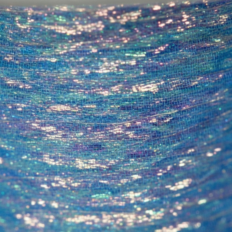 Organza-Band blau mit Multicolor-Effekt und drahtverstärkten Kanten, ideal zum Formen und um Ihren Projekten eine elegante, lebendige Note zu verleihen.