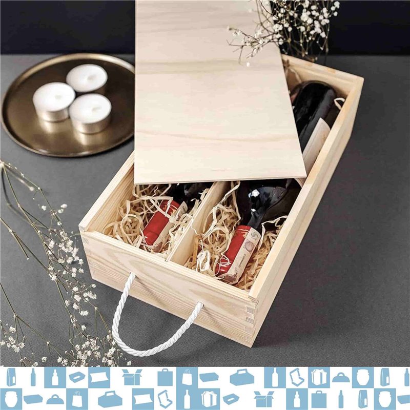 Verleihen Sie Ihrer Dekoration einen Hauch von Rustikalität und natürlicher Eleganz, indem Sie Ihre Holzkiste mit Kieferndetails schmücken.