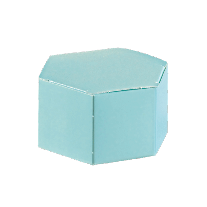 Geschenkbox - Esagono Celeste 60x30mm aus stabilem Karton mit stilvollem sechseckigem Design. Ideal für Süßigkeiten, Schmuck oder handgefertigte Kleinigkeiten. Das himmelblaue Finish verleiht eine frische und elegante Note.