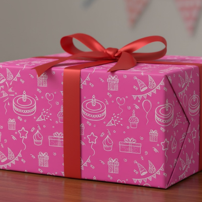 Das Geschenkpapier 70cm Fuchsia Fantasy bringt lebendige, kräftige Farben, die Ihre Geschenke stilvoll und elegant hervorheben. Perfekt für alles, von filigranem Schmuck bis zu größeren Spielzeugen.