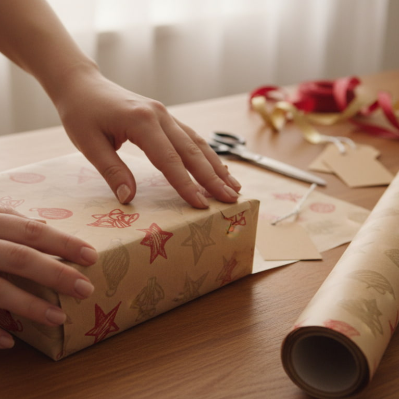 Schimmerndes Geschenkpapier im rustikalen Stil – perfekt für besondere Momente.