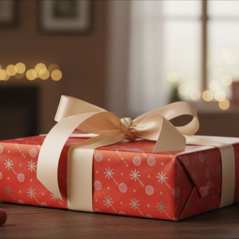 Bringen Sie mit einem tiefroten Papier und funkelndem Glanz Festlichkeit in Ihre Geschenke.