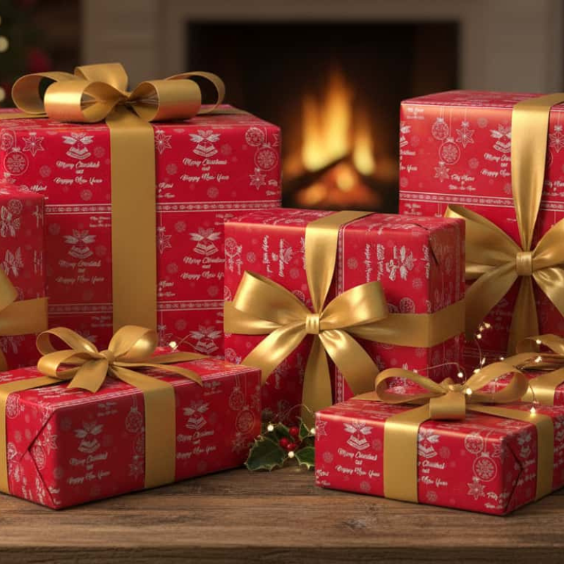Geschenkpapier in lebhaftem Rot, perfekt, um Ihren Geschenken einen festlichen und eleganten Touch zu verleihen. Herstellung auf Bestellung, Produktionszeit 2 bis 5 Werktage.