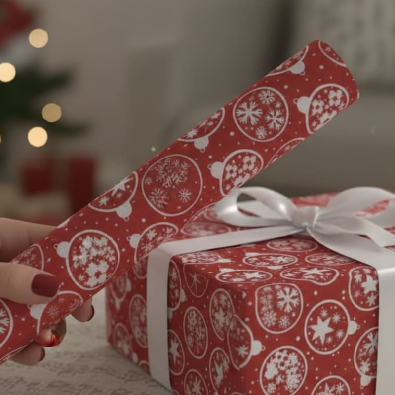 Geschenkpapier Red Christmas Globes 62CM X 90M. Verleihen Sie Ihren Weihnachtsgeschenken einen festlichen und traditionellen Touch mit unserem Geschenkpapier Red Christmas Globes – perfekt, um die festliche Jahreszeit stilvoll zu feiern!