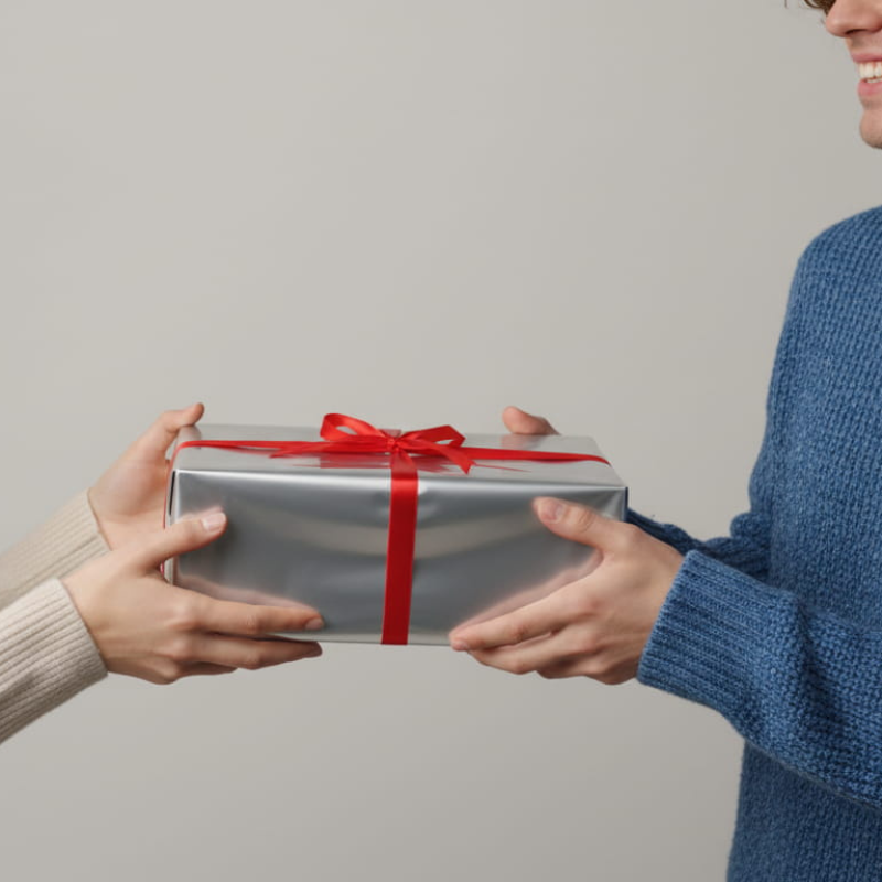 Nachhaltiges Geschenkpapier in Silberoptik. Ideal für stilvolle Geschenke mit Umweltbewusstsein.