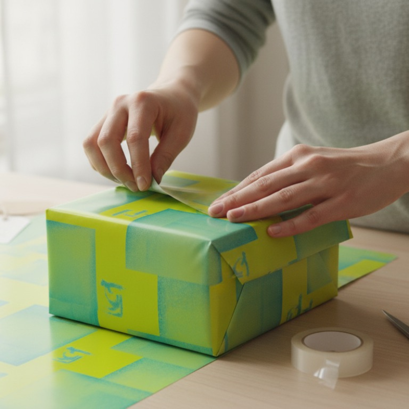 Grünes Geschenkpapier mit Reborn-Muster – für stilvolle Geschenkverpackungen.