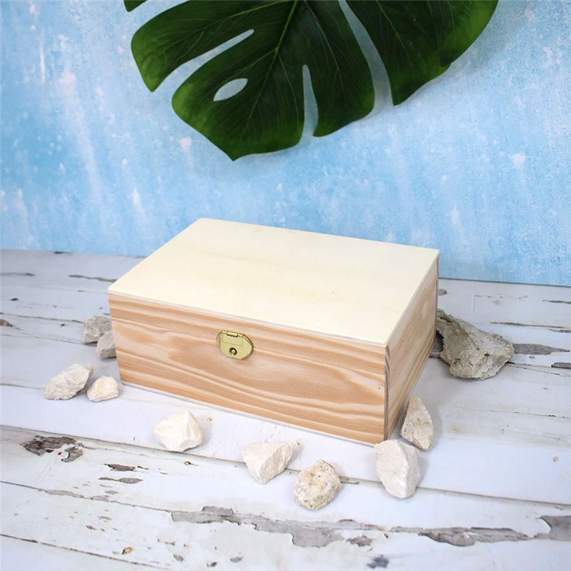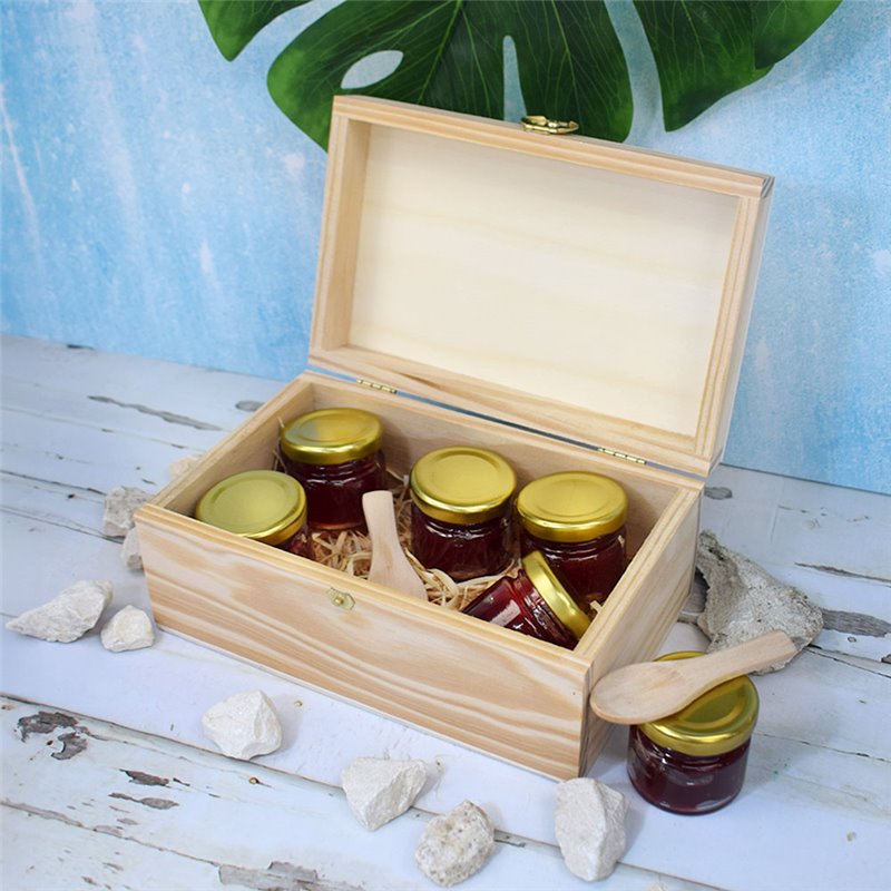 Holzbox Rebelde Treasure mit 190×120×84 mm, entworfen, um Eleganz und Funktionalität zu vereinen. Inspiriert von einer kleinen Truhe oder einem Koffer, perfekt zum Aufbewahren und Präsentieren von Gourmetartikeln.