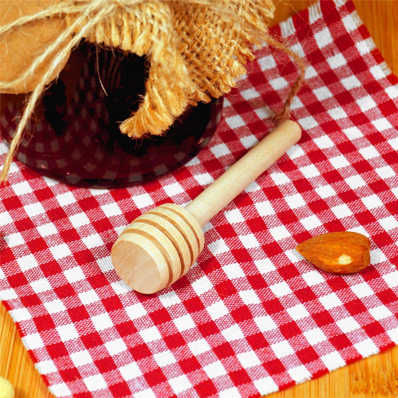Der Honiglöffel 8cm besteht aus Holz und ist perfekt, um Honig einfach zu servieren und Honiggläser zu dekorieren.