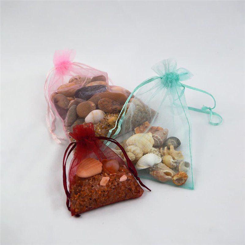 Hergestellt aus hochwertigem, transluzentem Organza, das den Inhalt stilvoll präsentiert.