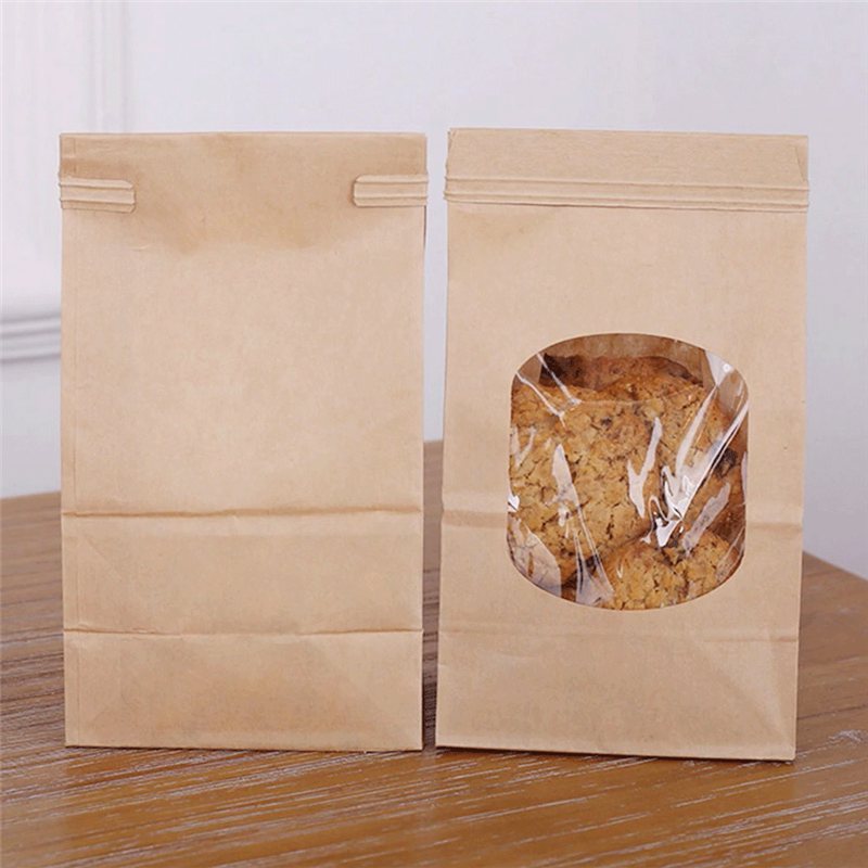 Papiertüten mit Fenster und Metallverschluss verfügen über einen Kunststoffinnenraum sowie seitliche und bodenständige Falten, die ein aufrechtes Stehen für bessere Präsentation ermöglichen.