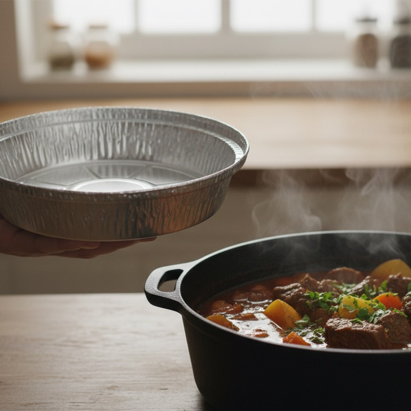 Die runde 1025ml Aluminiumform eignet sich perfekt für Braten, Kuchen und Familienportionen.