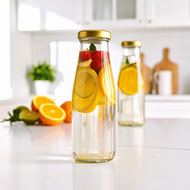 500ml glass bottle ideal for juices, milk and water. For custom-label orders, our design team will contact you to finalize the artwork.
