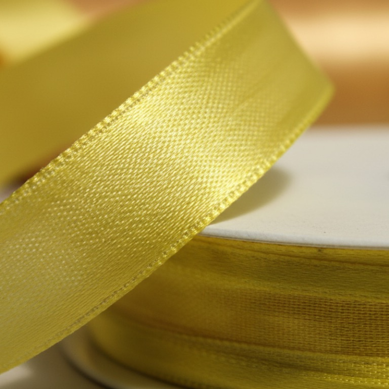 Yellow organza ribbon with satin edges – ideal for elegant crafts and gift wrapping.