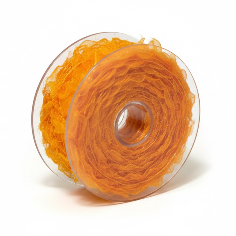 Orange organza bows ribbon with internal wire for easy shaping, perfect to create elegant and structured bows.