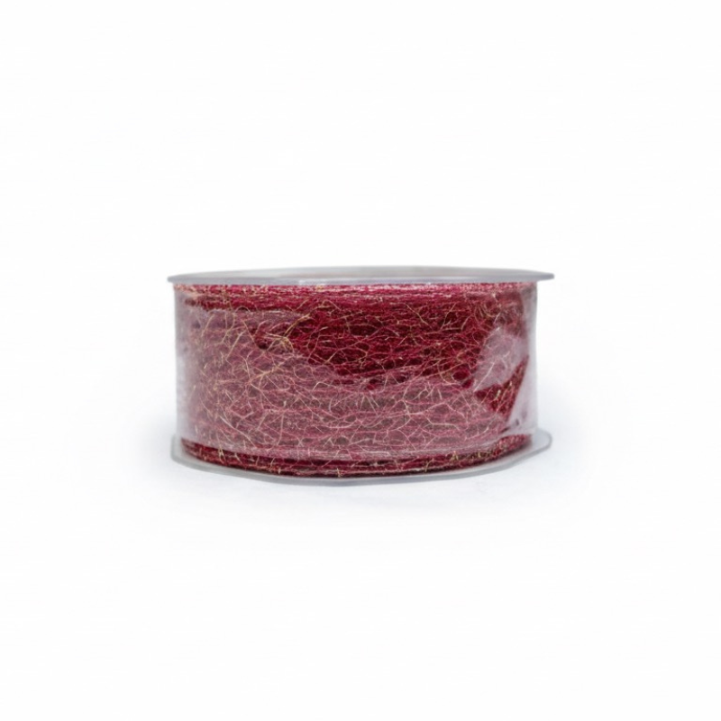 Golden bordeaux mesh ribbon with wired edges for easy shaping