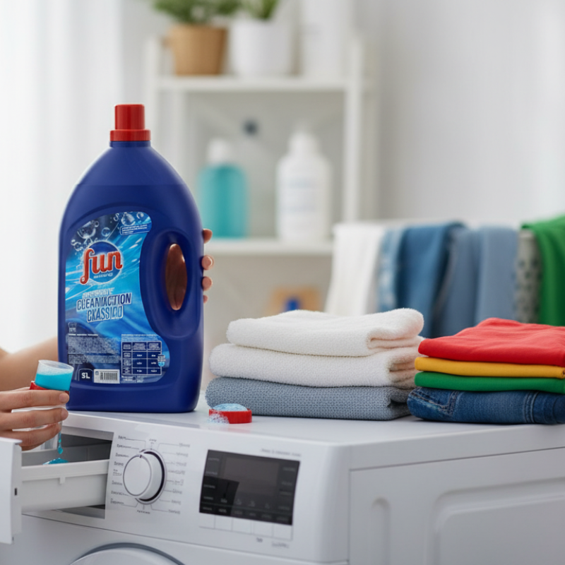 The Clean Action Laundry Detergent 5 L is a concentrated liquid detergent formulated with anionic and non‑ionic surfactants, suitable for automatic washing of both white and colored garments.