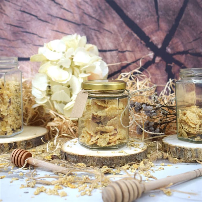 Hexagonal Glass Jar 180ml with Gold Lid, ideal for preserves, sauces, jams, and condiments.
