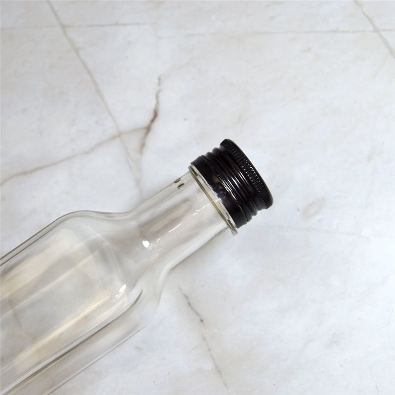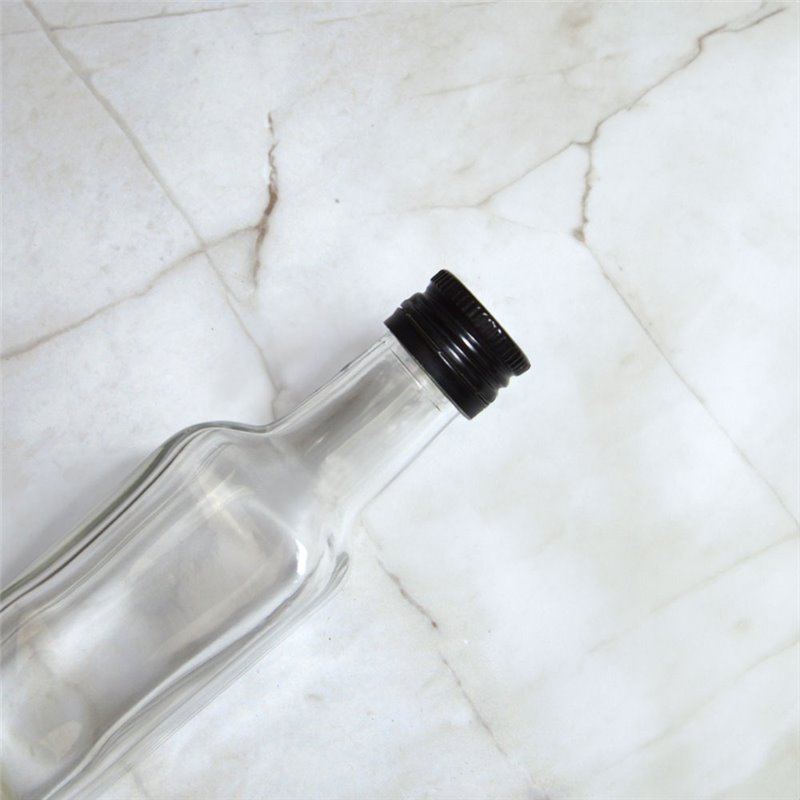 The black bottle cap provides effective sealing with a discreet and sophisticated look.