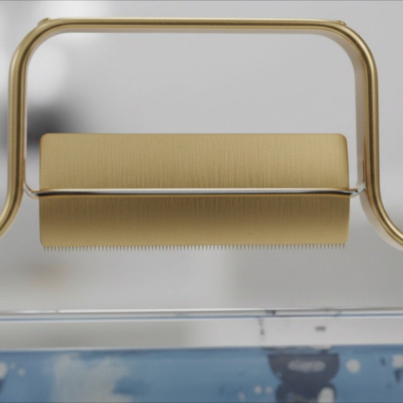 Horizontal wrapping paper dispenser with a metallic gold finish, designed for stylish and efficient use.