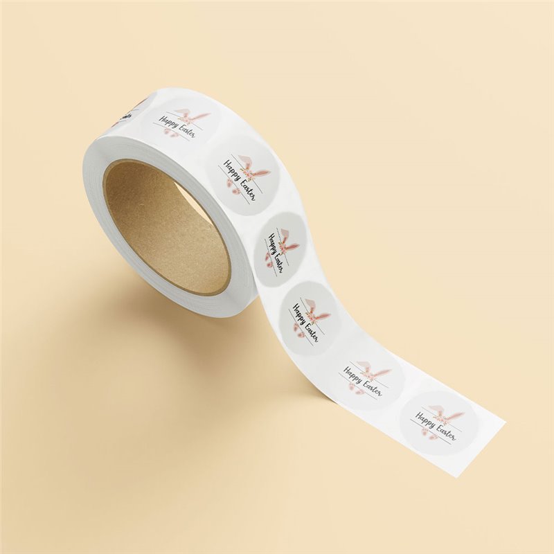 Self-adhesive label with charming bunny tail illustration for Easter.