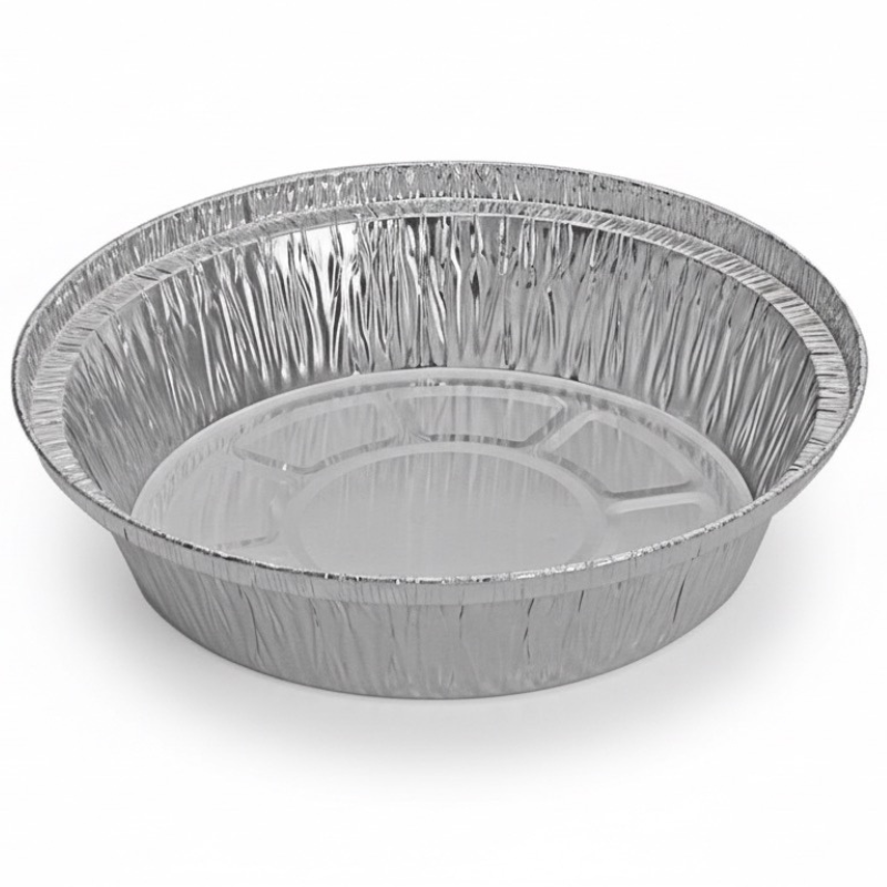 The 750ml Round Aluminum Tray is ideal for single meals, pies, and desserts.