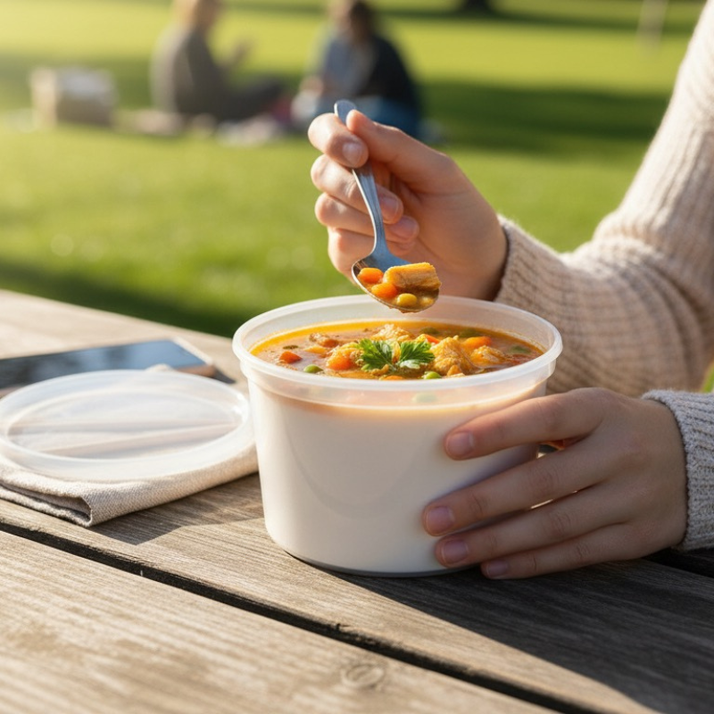 500ml white plastic soup bowl, perfect for take away and quick meals.