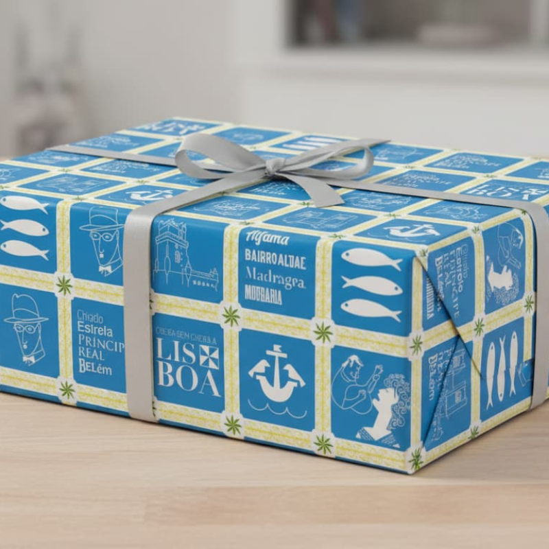 Wrapping paper inspired by Lisbon’s traditional tiles — a gift of art and culture.