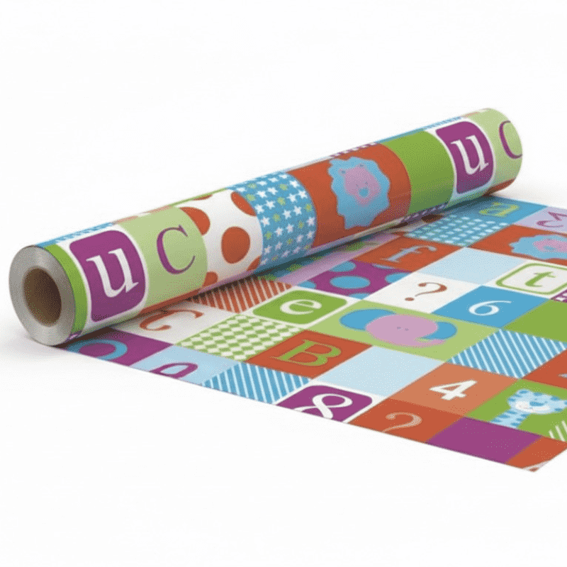 Wrapping paper with Playful Alphabet print, fun and educational.