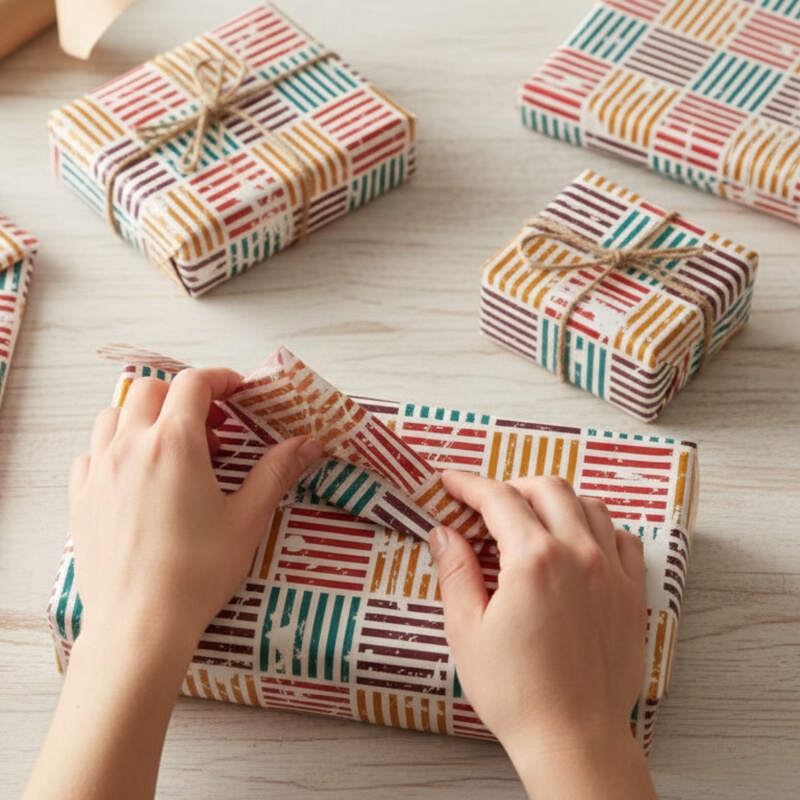 Wrapping paper with Urban Stripes print, modern and sophisticated.