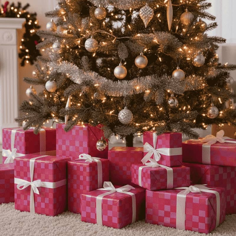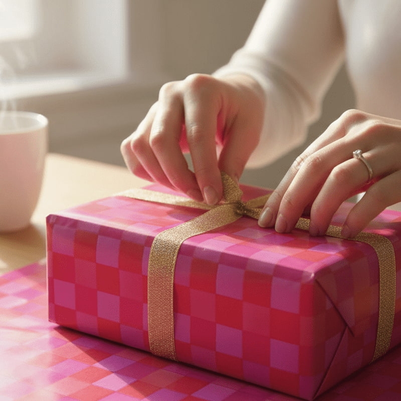 Wrapping paper with pink Tetris pattern. Fun and colorful for your gifts.