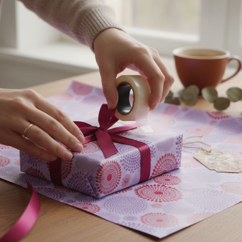 Red wrapping paper with a microbiome-style pattern — creative and bold.