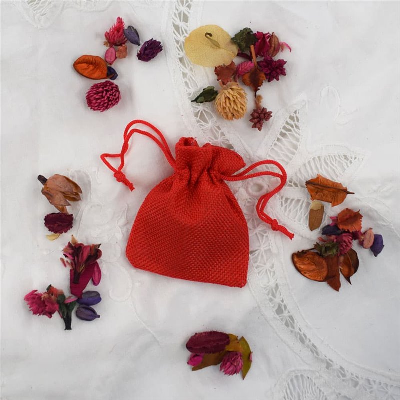 La bolsa de yute Infinitum Red de 7x9cm destaca por su color vibrante y elegante, ideal para regalos pequeños y recuerdos delicados.