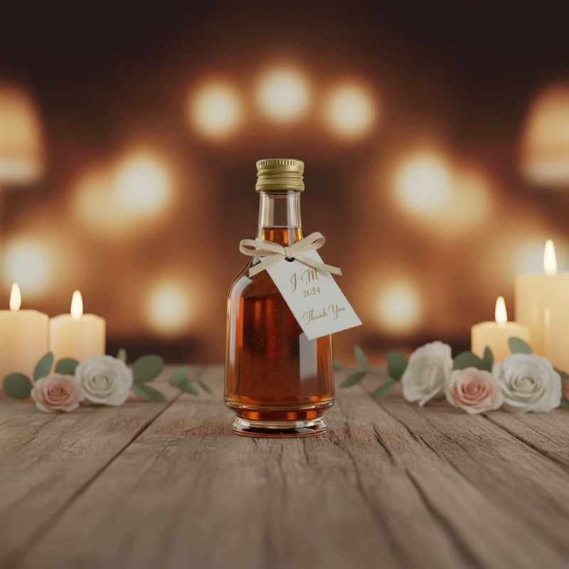 Botella de vidrio 50ml premium ideal para regalos especiales. En compras con etiquetas personalizadas, nuestro equipo de diseño se pondrá en contacto para definir el arte a imprimir.