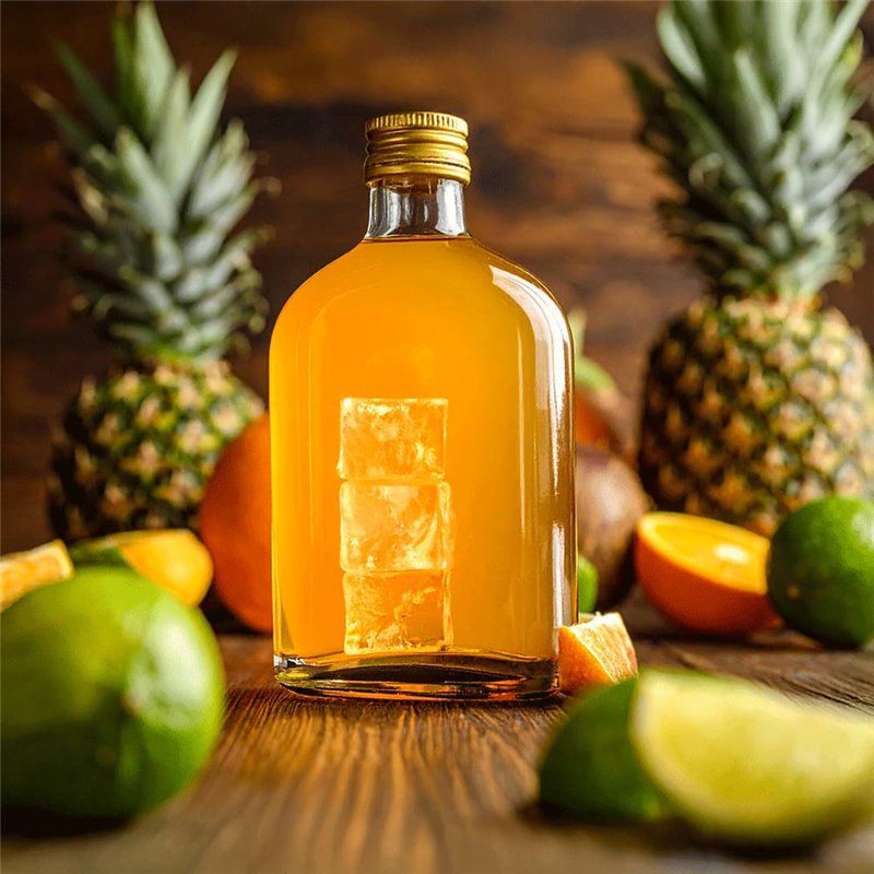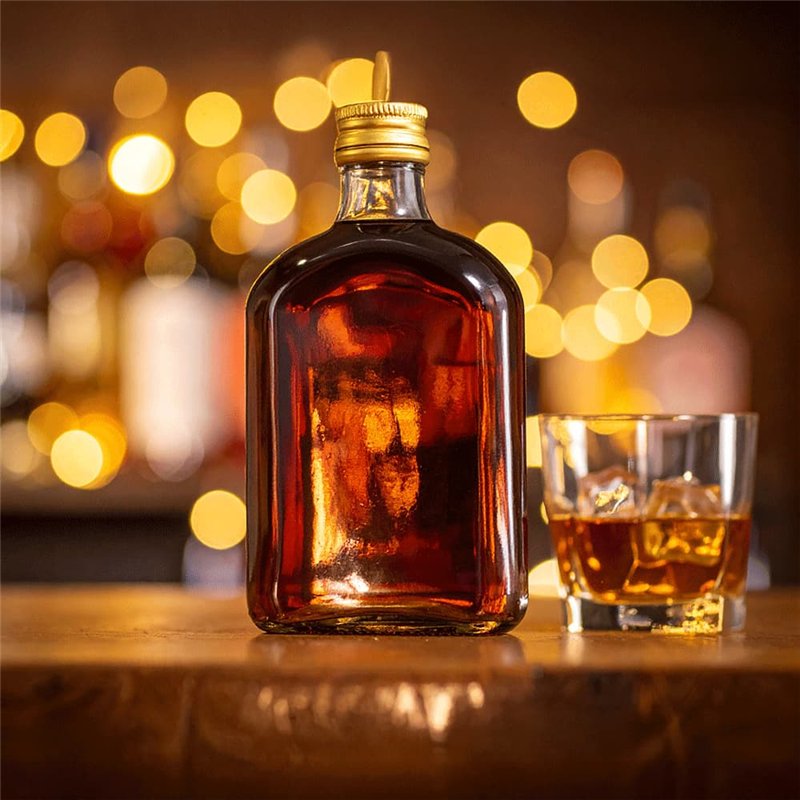 Botella de vidrio con capacidad de 200ml, estilo bolsillo, para licores y otras bebidas espirituosas.