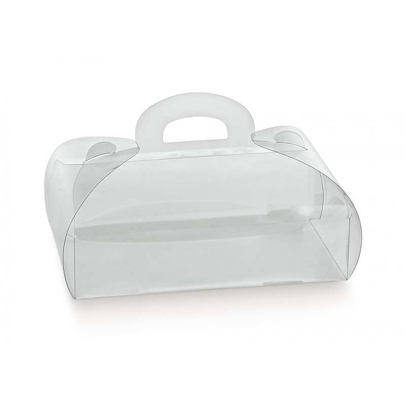 Caja de PVC transparente en forma tortina. Perfecta para bombones, caramelos y repostería.