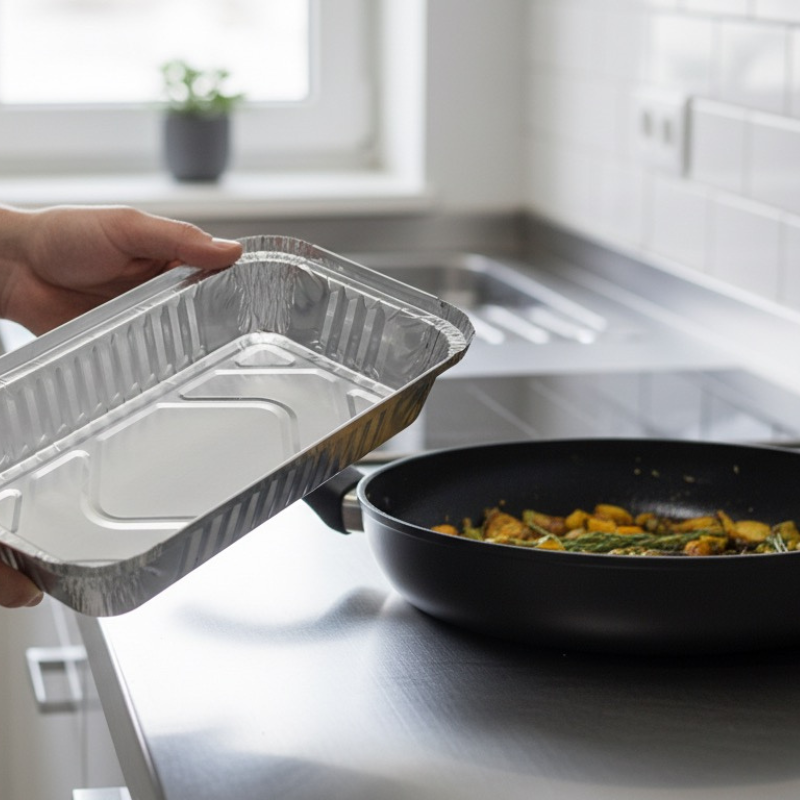 La Bandeja de Aluminio Rectangular 650ml es perfecta para preparar, almacenar y transportar alimentos de forma segura y cómoda.
