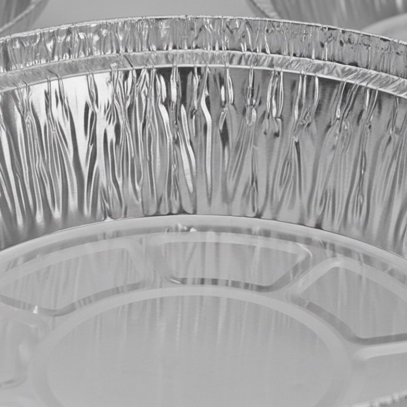 Bandeja de aluminio redonda 750ml, resistente y práctica, ideal para postres y take away.