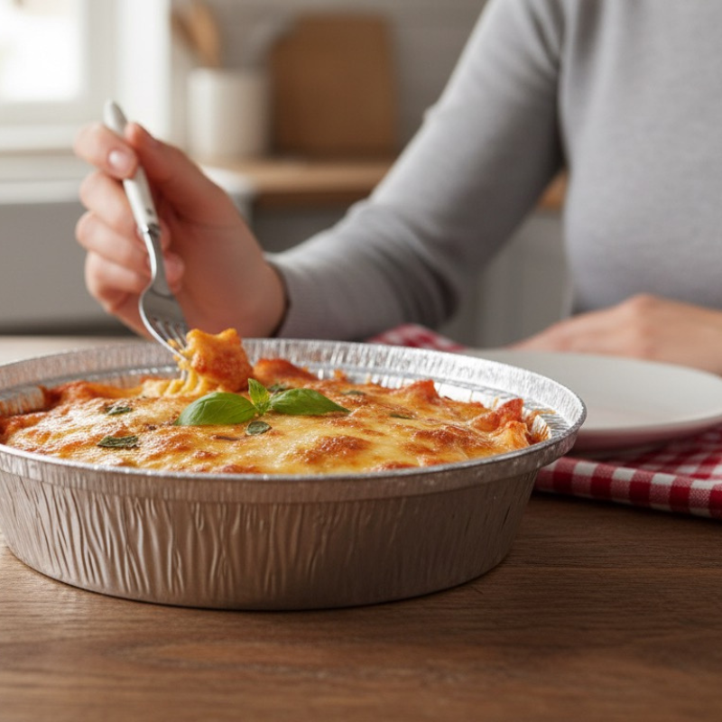 La Bandeja de Aluminio Redonda 750ml es perfecta para tartas, postres y comidas individuales.