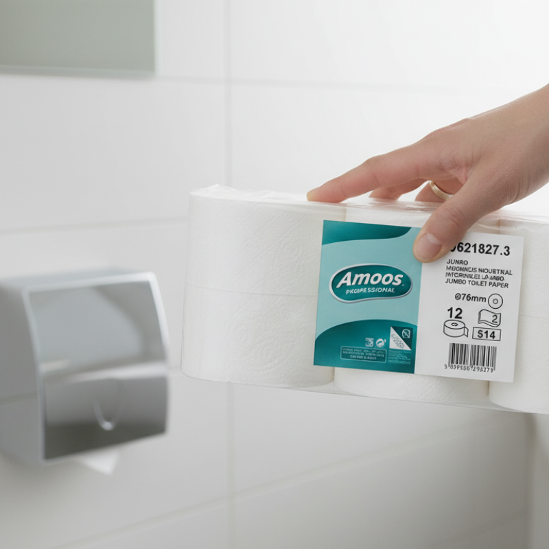 El papel higiénico jumbo Amoos ofrece alta calidad y durabilidad, ideal para áreas de gran afluencia.