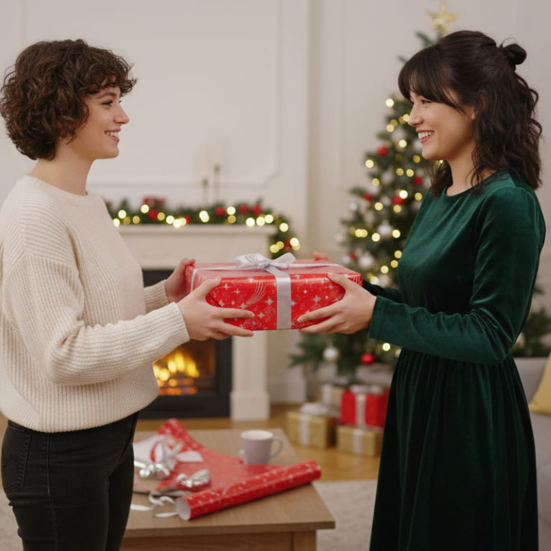 Papel de regalo elegante con diseño Crimson Winter Wonders, ideal para envolver regalos con estilo y calidez. Producto fabricado bajo pedido, con tiempo de producción de 2 a 5 días hábiles.