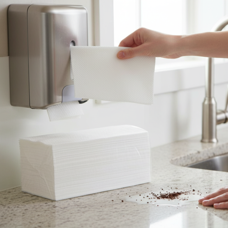Su formato en Z permite dispensar una hoja a la vez, reduciendo desperdicios y promoviendo la higiene al evitar el contacto directo. El papel suave ofrece una experiencia cómoda y eficaz.