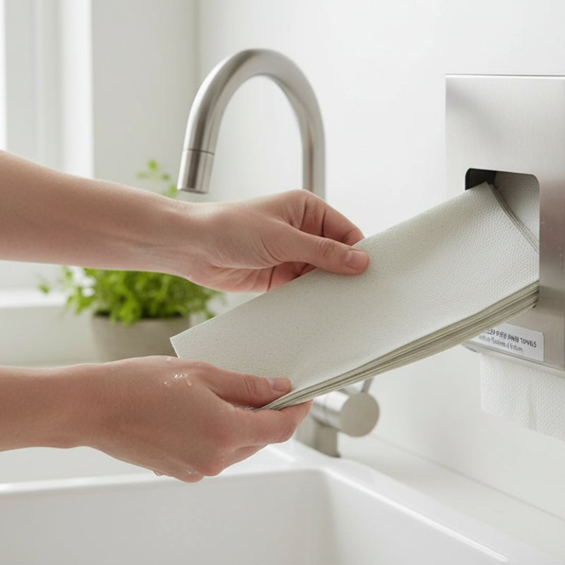 Toallas de mano zig zag de papel reciclado, perfectas para baños y cocinas.