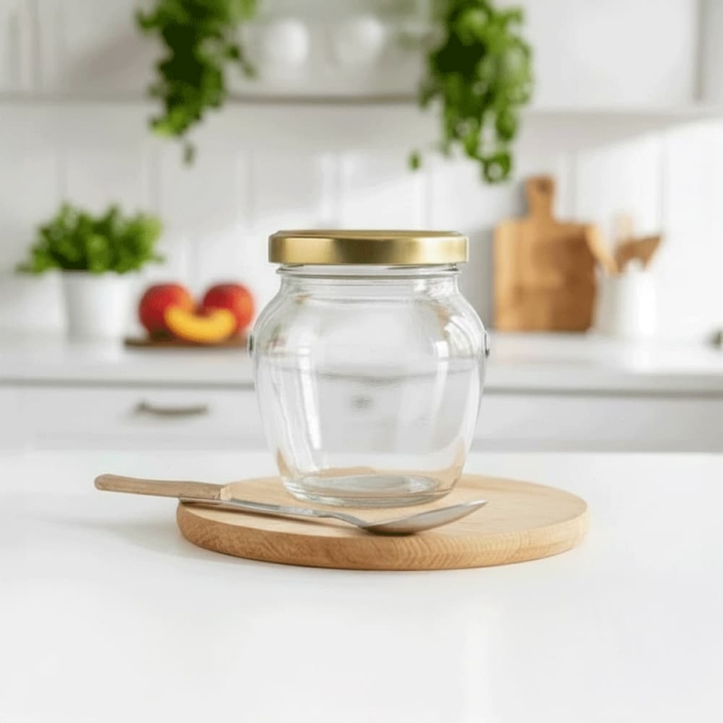 Descubra el tarro de vidrio para yogur de 250ml con tapa dorada, fabricado en vidrio de alta calidad que mantiene frescura, sabor y textura. Ideal para yogures artesanales, postres, mousses, mermeladas y preparaciones alimentarias. Perfecto para uso doméstico, hostelería e industrias alimentarias.