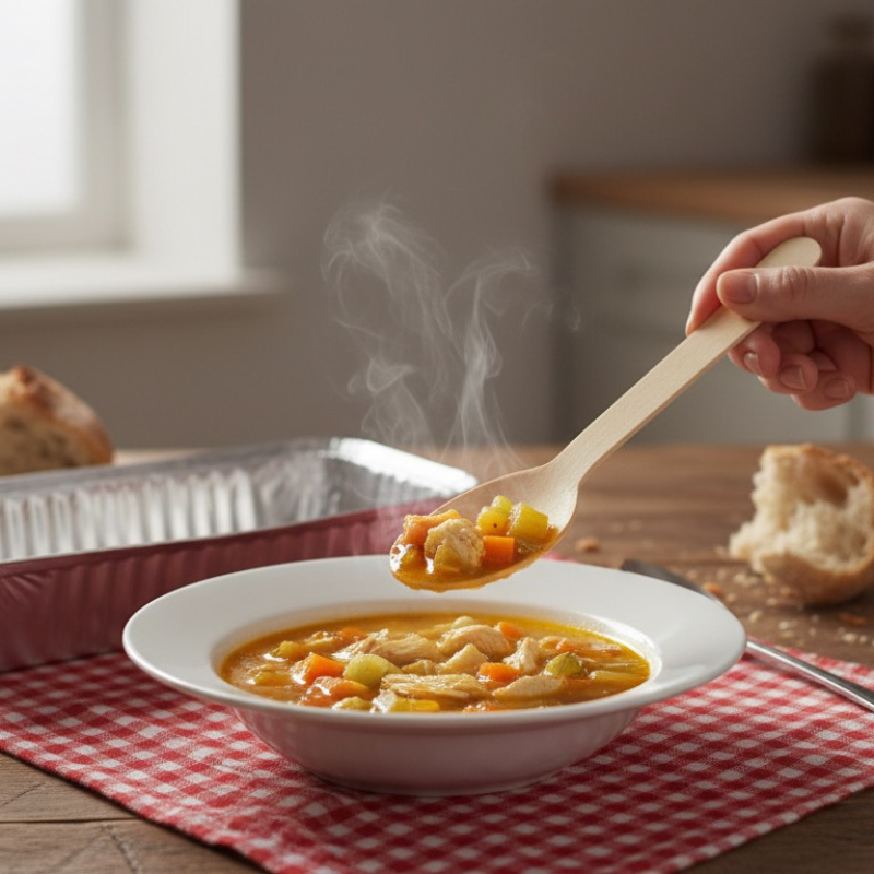 Cuillère en bois idéale pour soupes et bouillons.