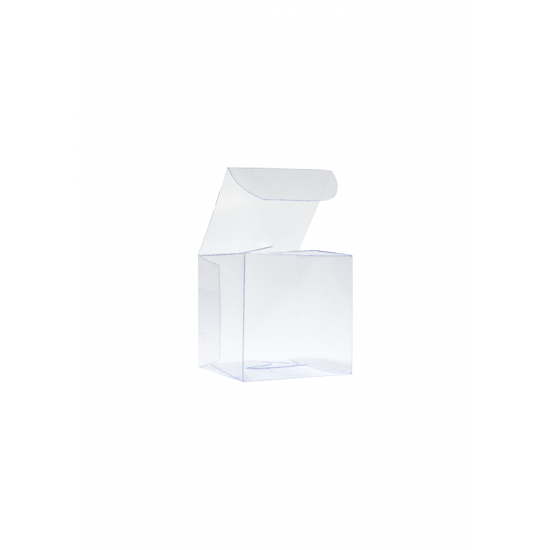 Boîte en PVC transparent en acétate avec système de fermeture scatto. Parfaite pour bonbons, cadeaux et pâtisseries.