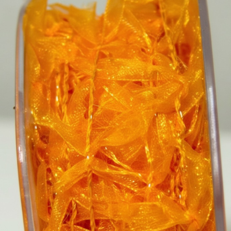 Ruban nœuds organza orange avec fil intérieur pour faciliter le modelage, parfait pour créer des nœuds élégants et structurés.