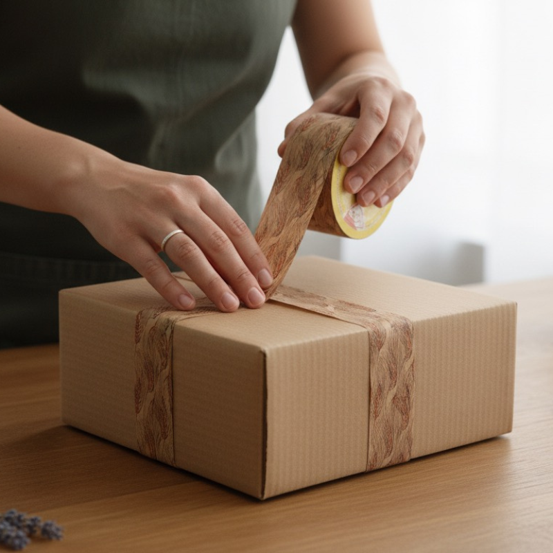 Ruban en papier kraft naturel – ton blé, 70mm de large, 100m de long