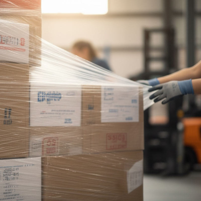 Film étirable fourni en rouleaux, idéal pour un emballage rapide et sécurisé de palettes ou produits individuels.