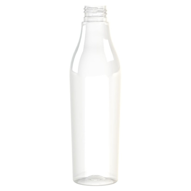 Flacon PET conique au design épuré, idéal pour un conditionnement léger et sécurisé. Parfait pour jus, huiles, produits cosmétiques.